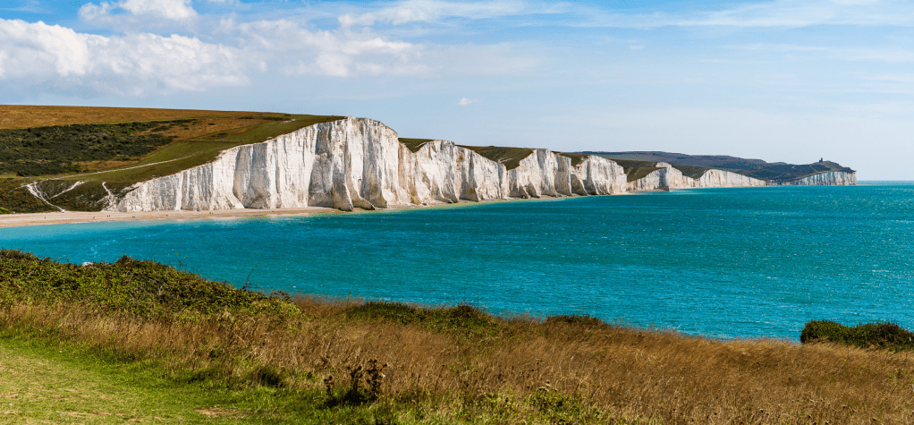 De Seven Sisters-kliffen zijn extra bijzonder omdat het zeven opeenvolgende glooiende heuvels zijn, zeven witte zussen. Op de bovenstaande foto kan je ze tellen. Ze liggen in East-Sussex, dat is in het zuidoosten van Engeland en lopen tussen Seaford en Eastbourne.