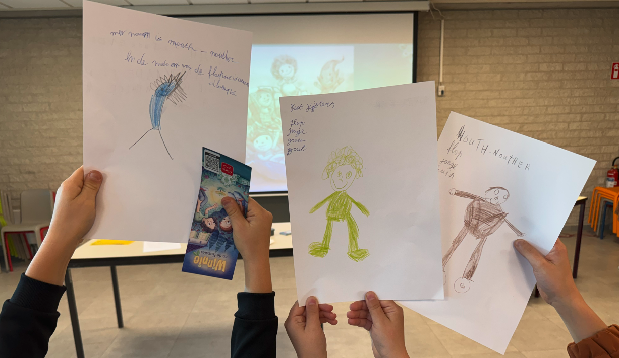 Wim praat niet zo veel over Winnie, maar vooral over de honderden voordelen van lezen (je leeft duizend levens, lezers leven ook twee jaar langer, ze vinden sneller een lief…) en hoe heerlijk het is om te schrijven. Dat ontdek je ook zelf als je je eigen flopsie bedenkt tijdens de lezing/workshop.